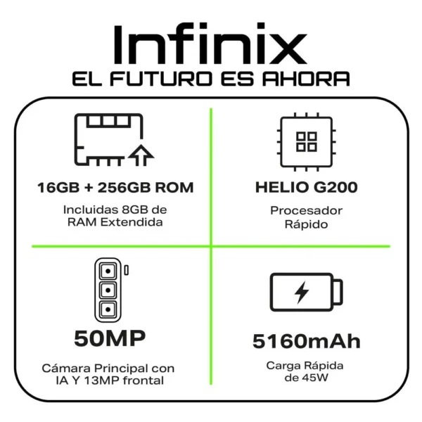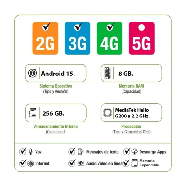 - Procesador:Â Procesador Media Tek Helio G200 6 nm 2.2 GHz.